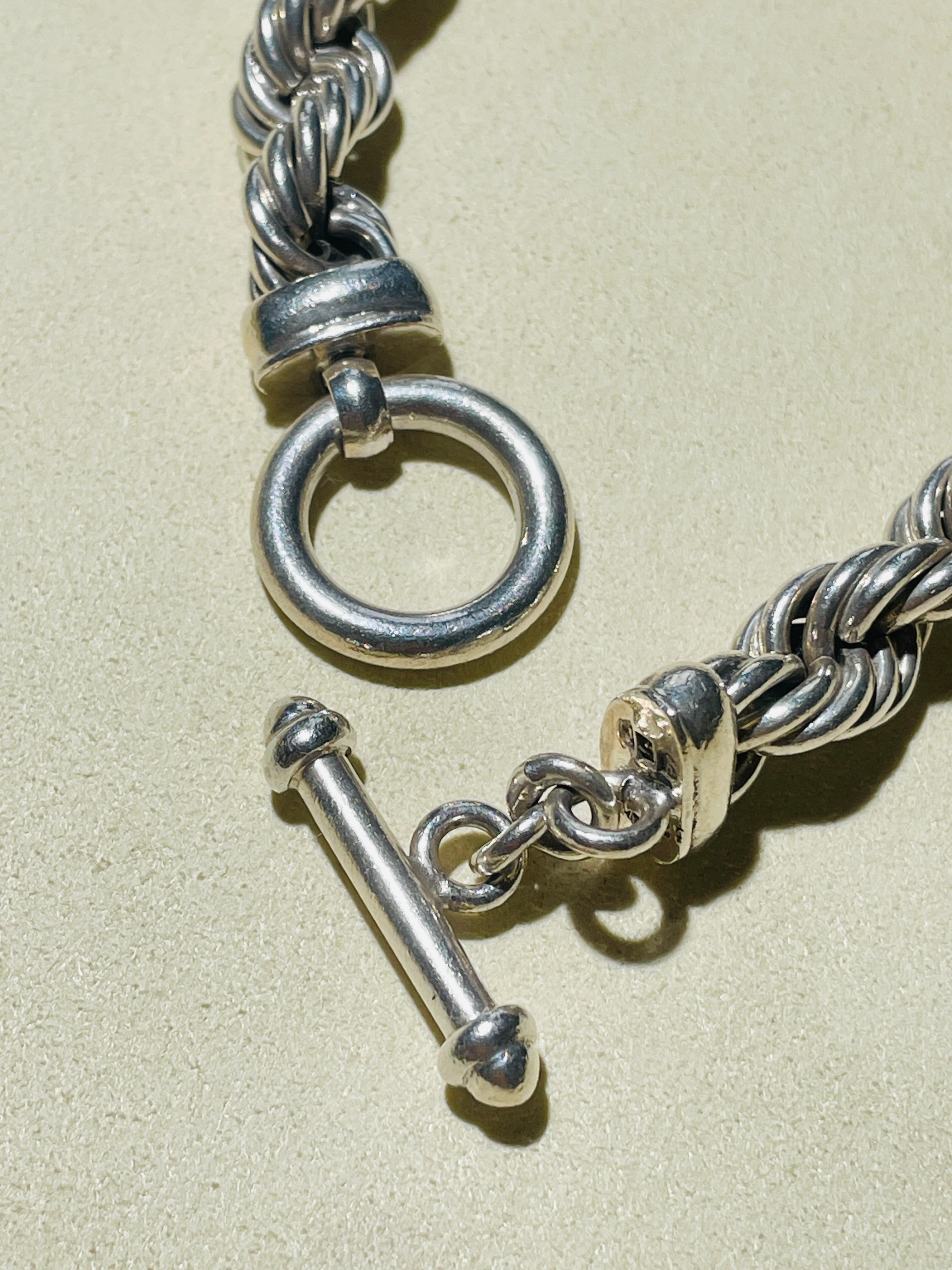 留め具はマンテルタイプで着脱もしやすく、シンプルですが、細かな職人技が伺えるデザインはやはり名作。この太さのものはかなり流通量も少なく、ウェーブのある美しいデザインが心地よい作品。