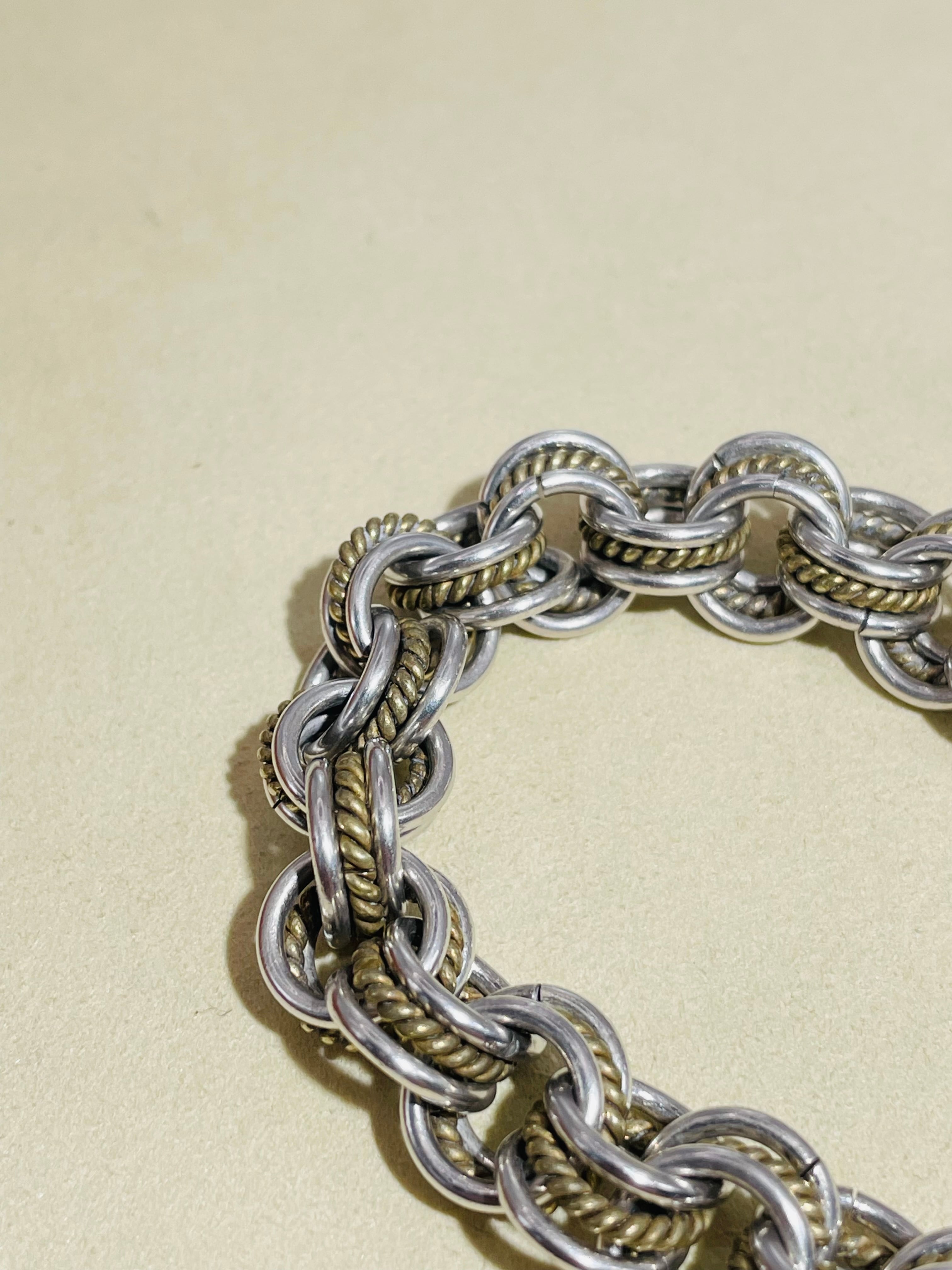 真鍮とシルバーのコントラストが美しい3連のチェーンをメインに、ロロデザインで仕上げた美しいブレスレット。