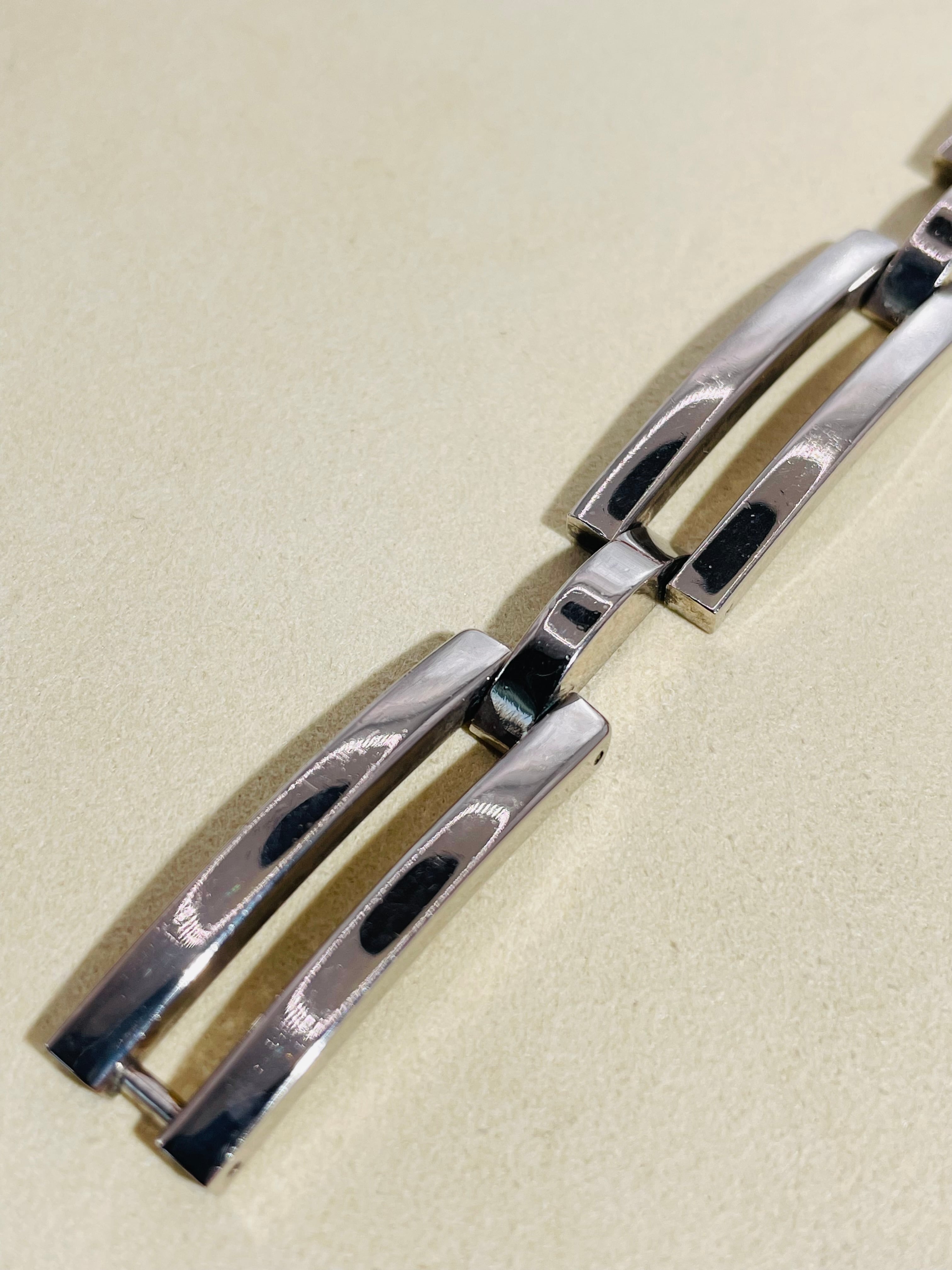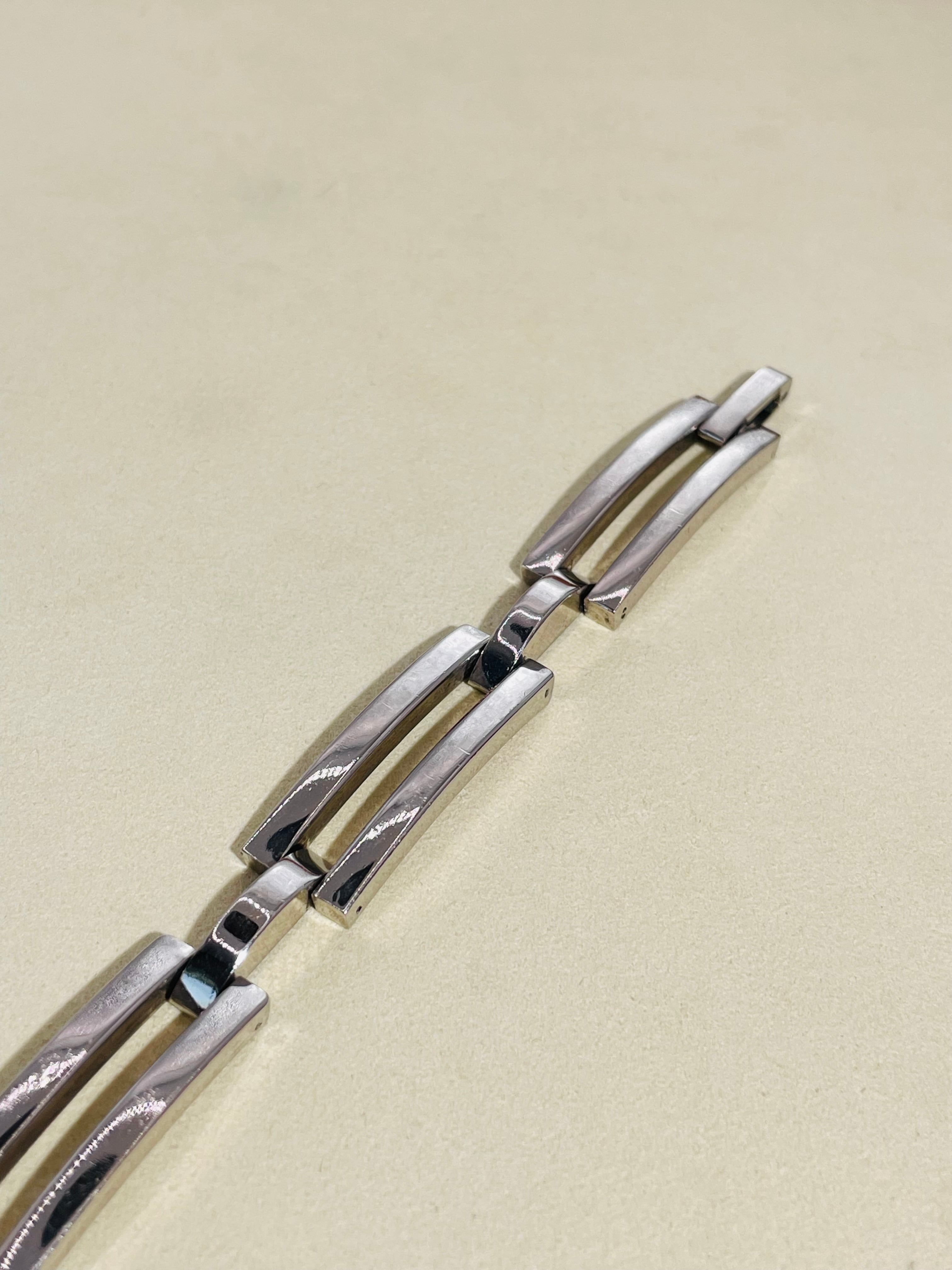 最大幅1cmの程よい主張感、美しい研磨と直線的なデザインが時計のような上品さを生み出してくれるそんな一本。