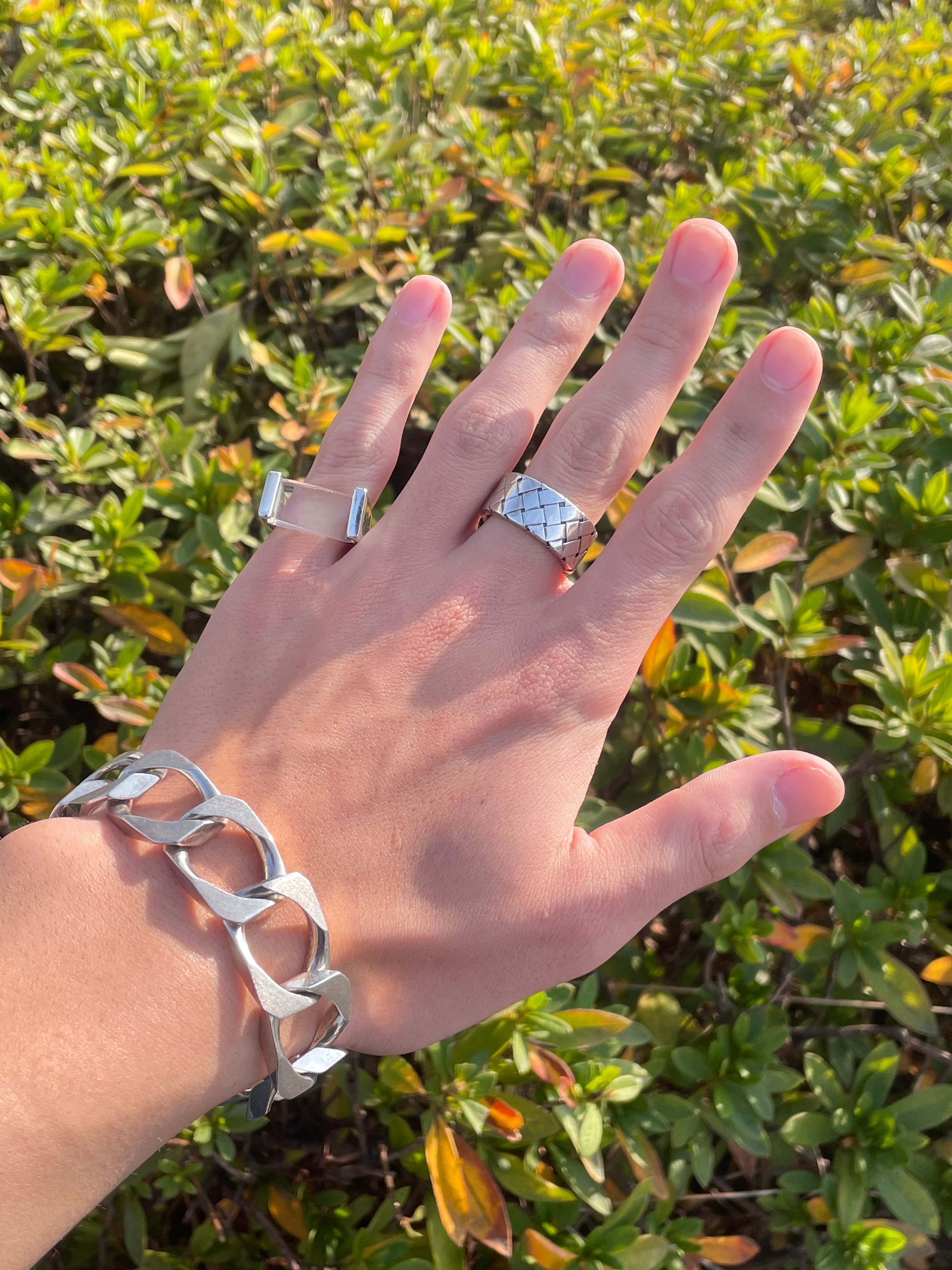 大胆に肌を見せる構造的な美しさが、他のリングとは一線を引いた魅力を感じさせます。