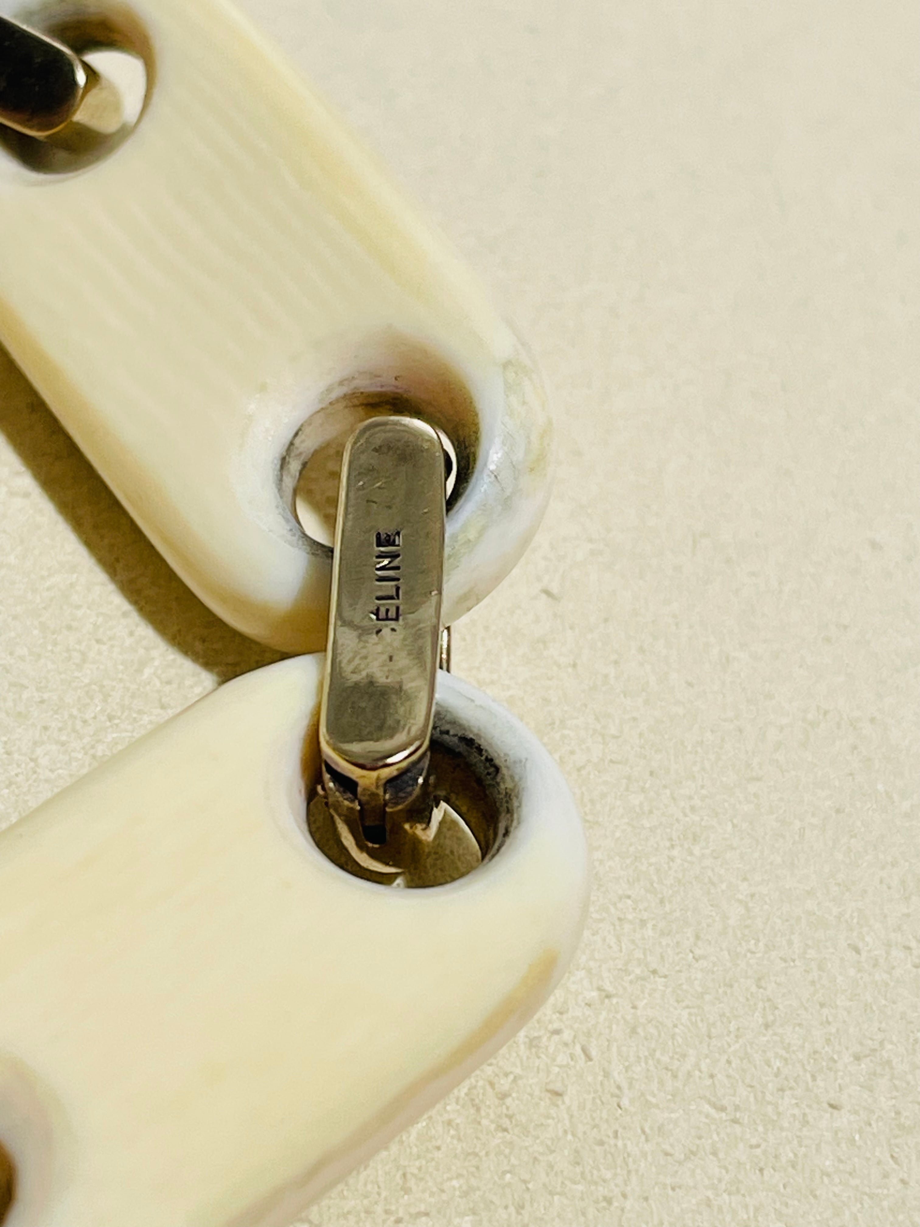 CELINE PARIS Made in France, Vermail, 800シルバー製を示す蟹のホールマークと工房の刻印があります。