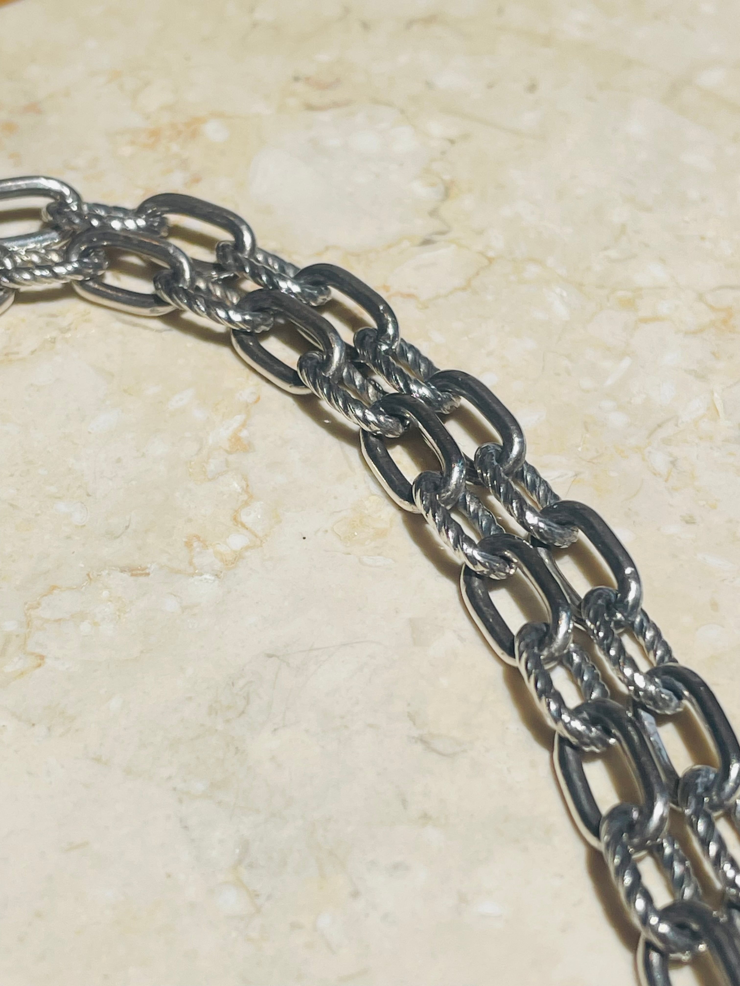 ツイストが美しいコマとプレーンなコマを交互に配置したチェーンも美しく、素晴らしいクリエイション。