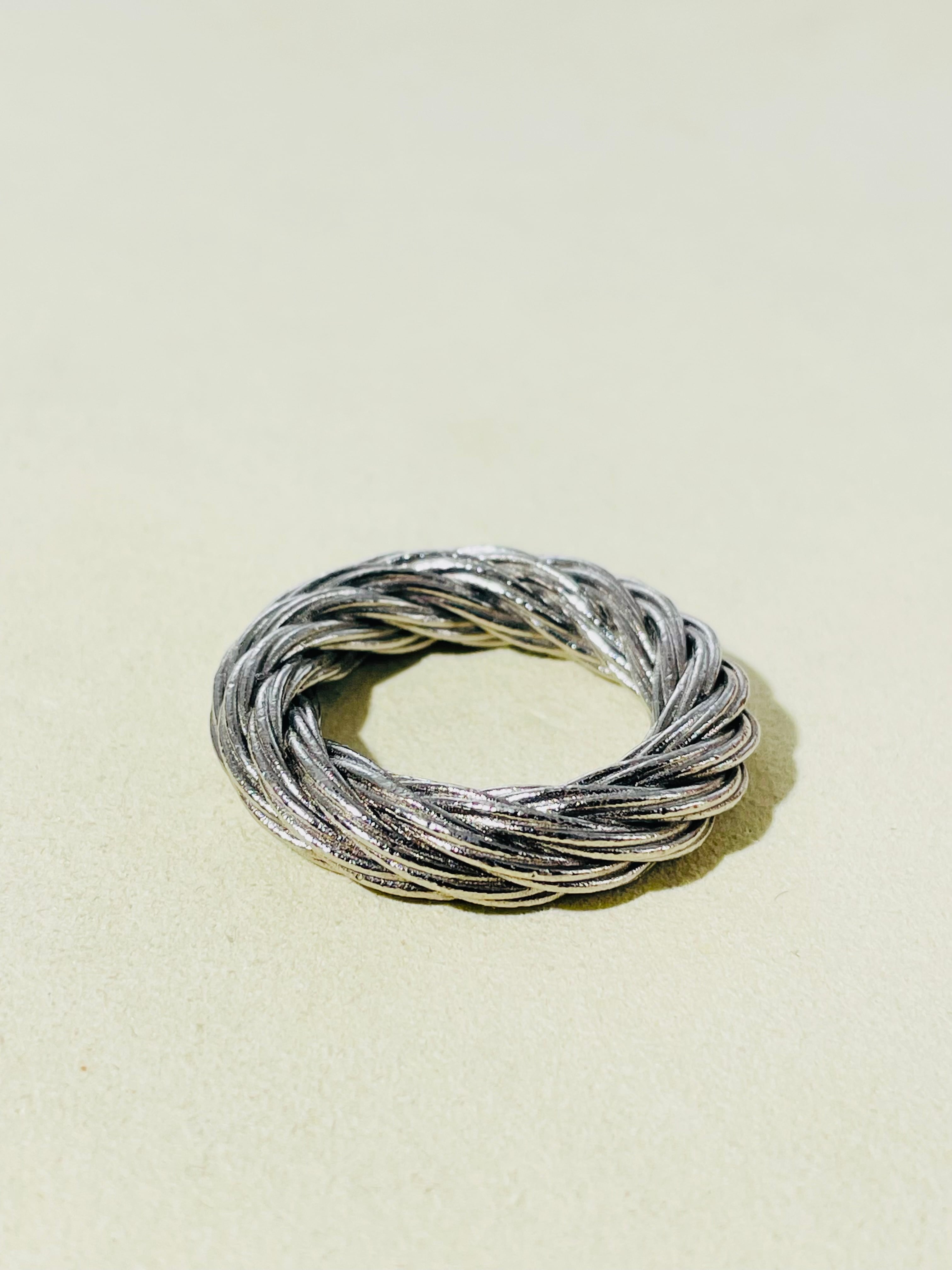 ツイストさせて作ったシルバーの線を何重も重ねながら編み込んで美しく整えた作品。