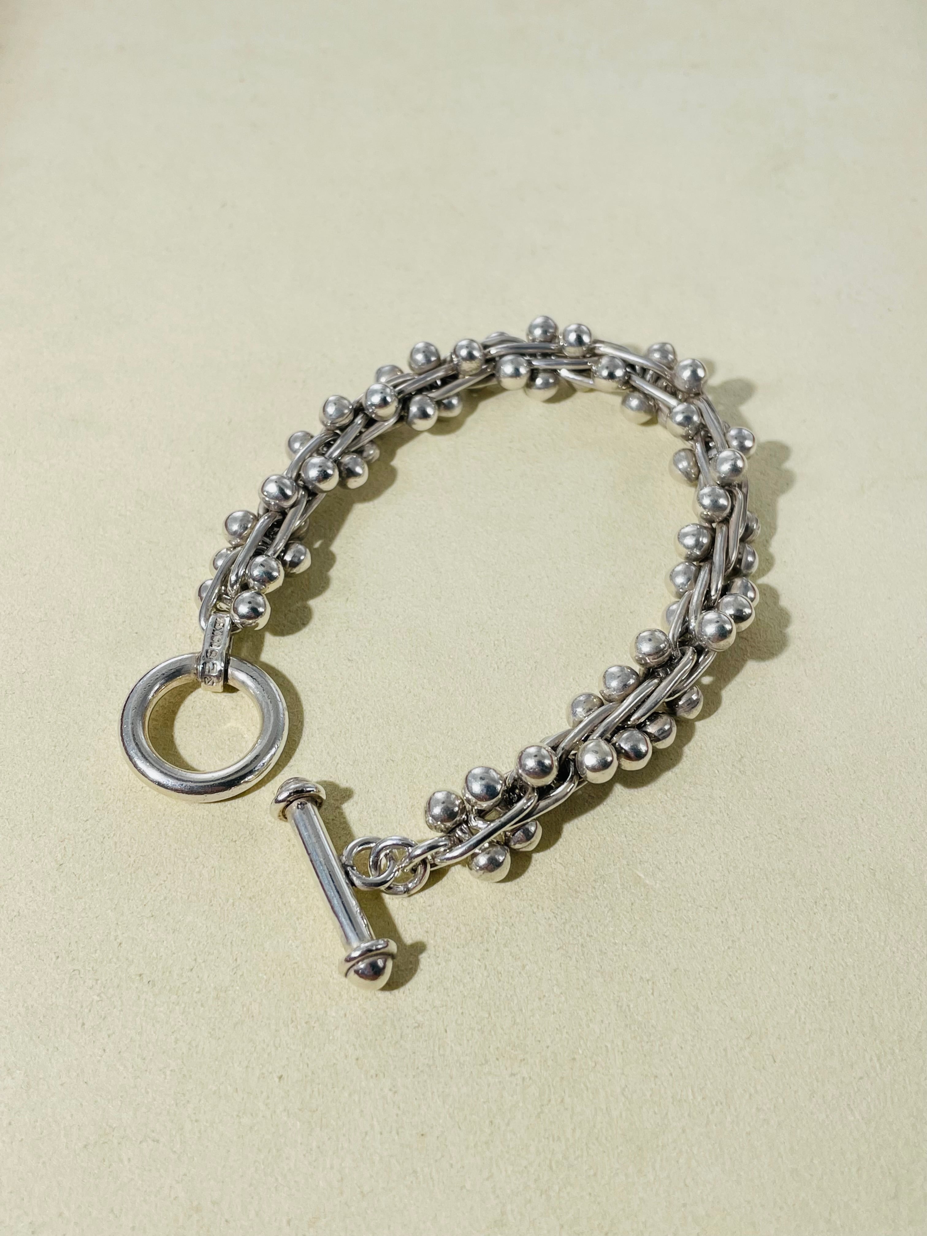 独特の螺旋構造にメキシコらしいシルバーパールを組み合わせた作品。