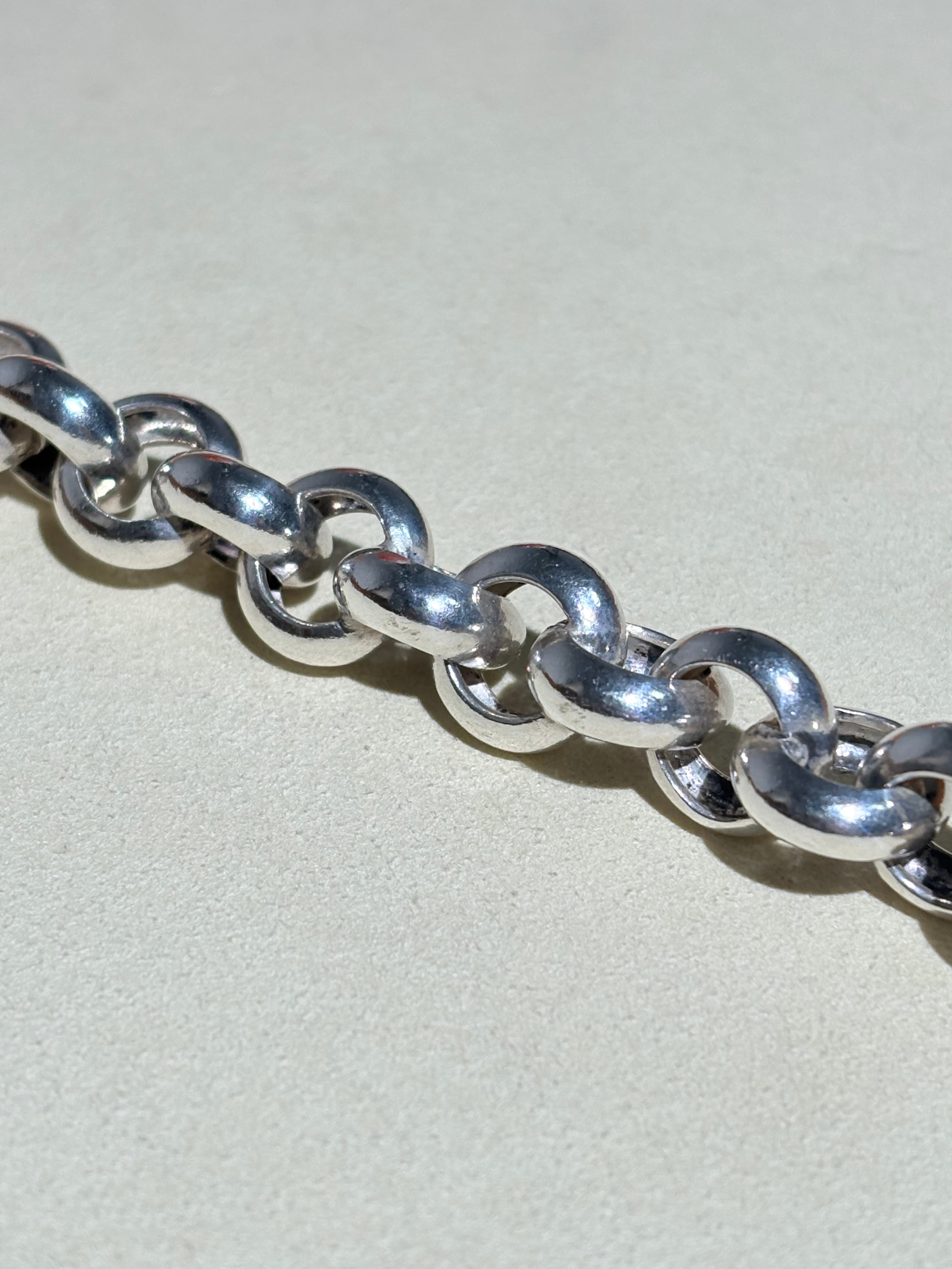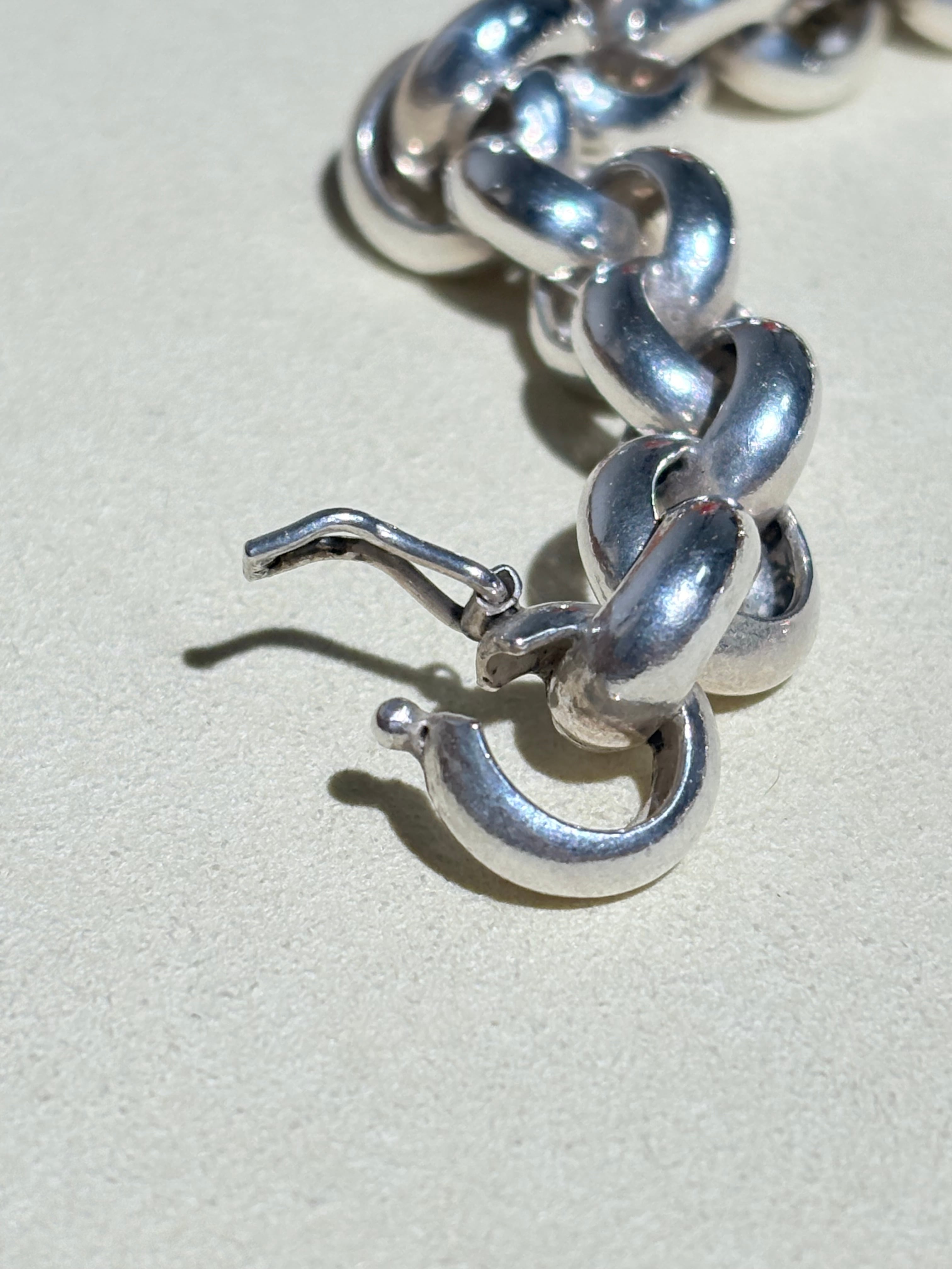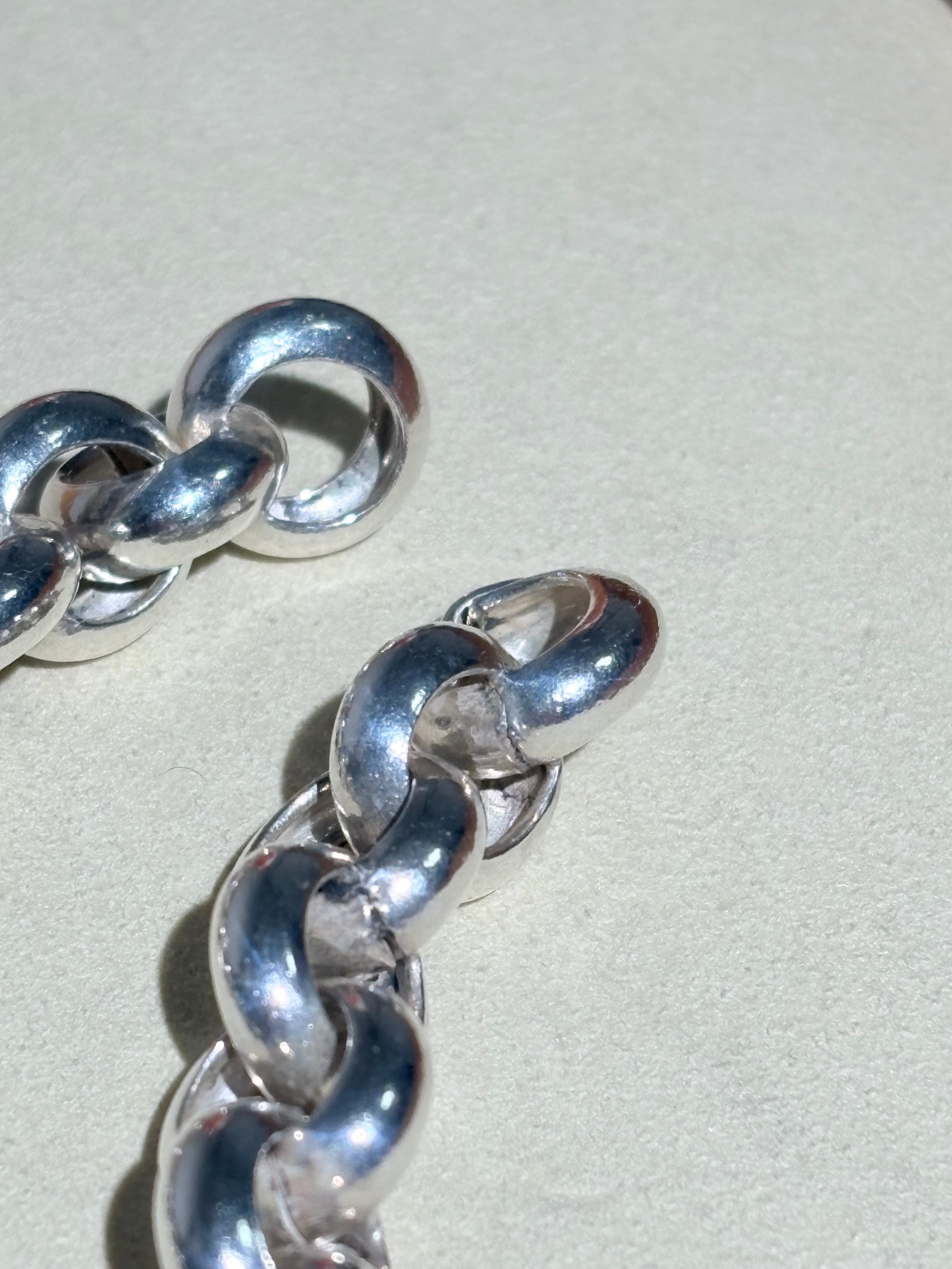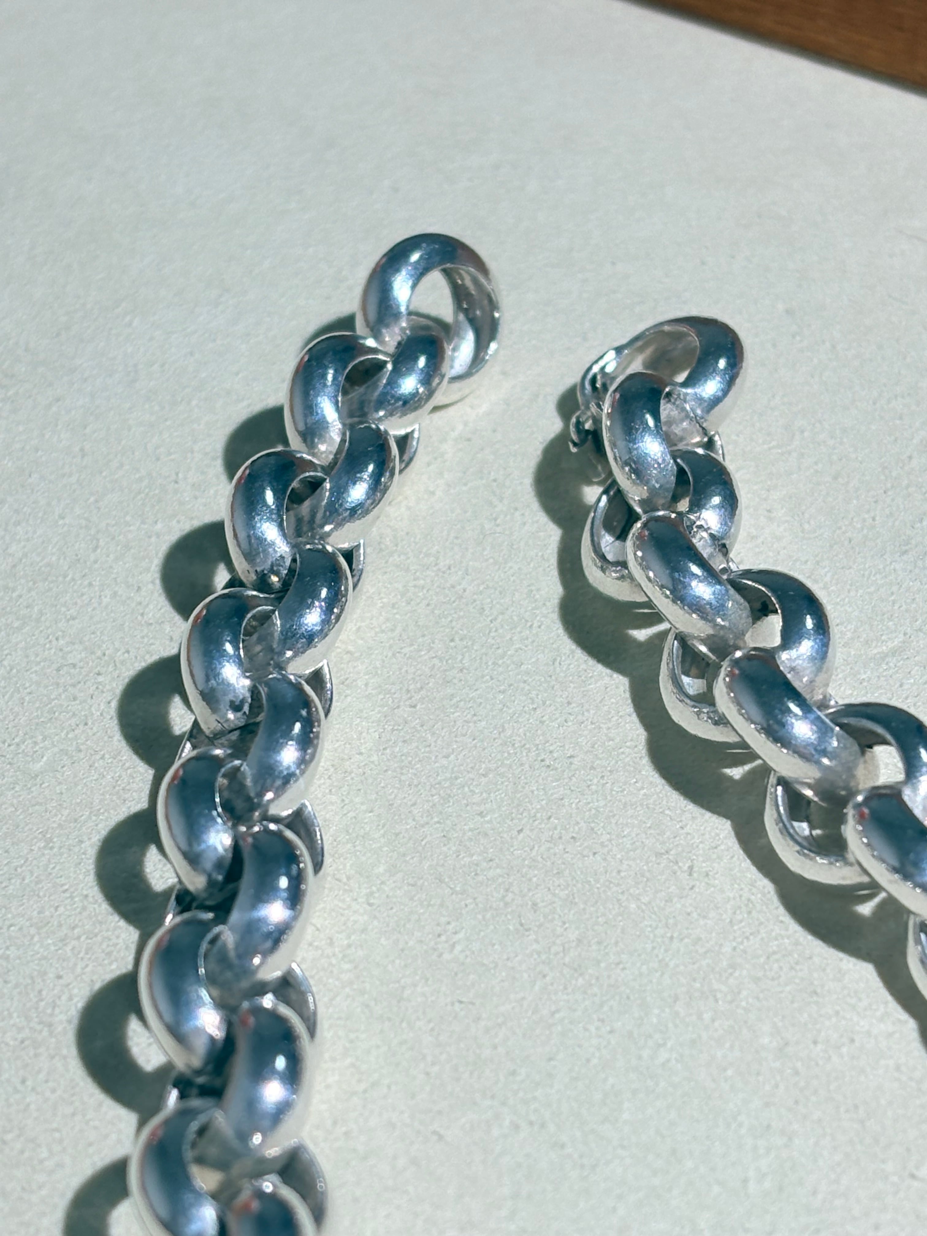 2つで一つのコマを形成する珍しい一本。留め具も隠れる美しい仕様です。丁寧な正円系のリンクを繋ぎ合わせおり、コマの形もブレにくいため、どこから見ても綺麗に映るのが良いなと感じます。