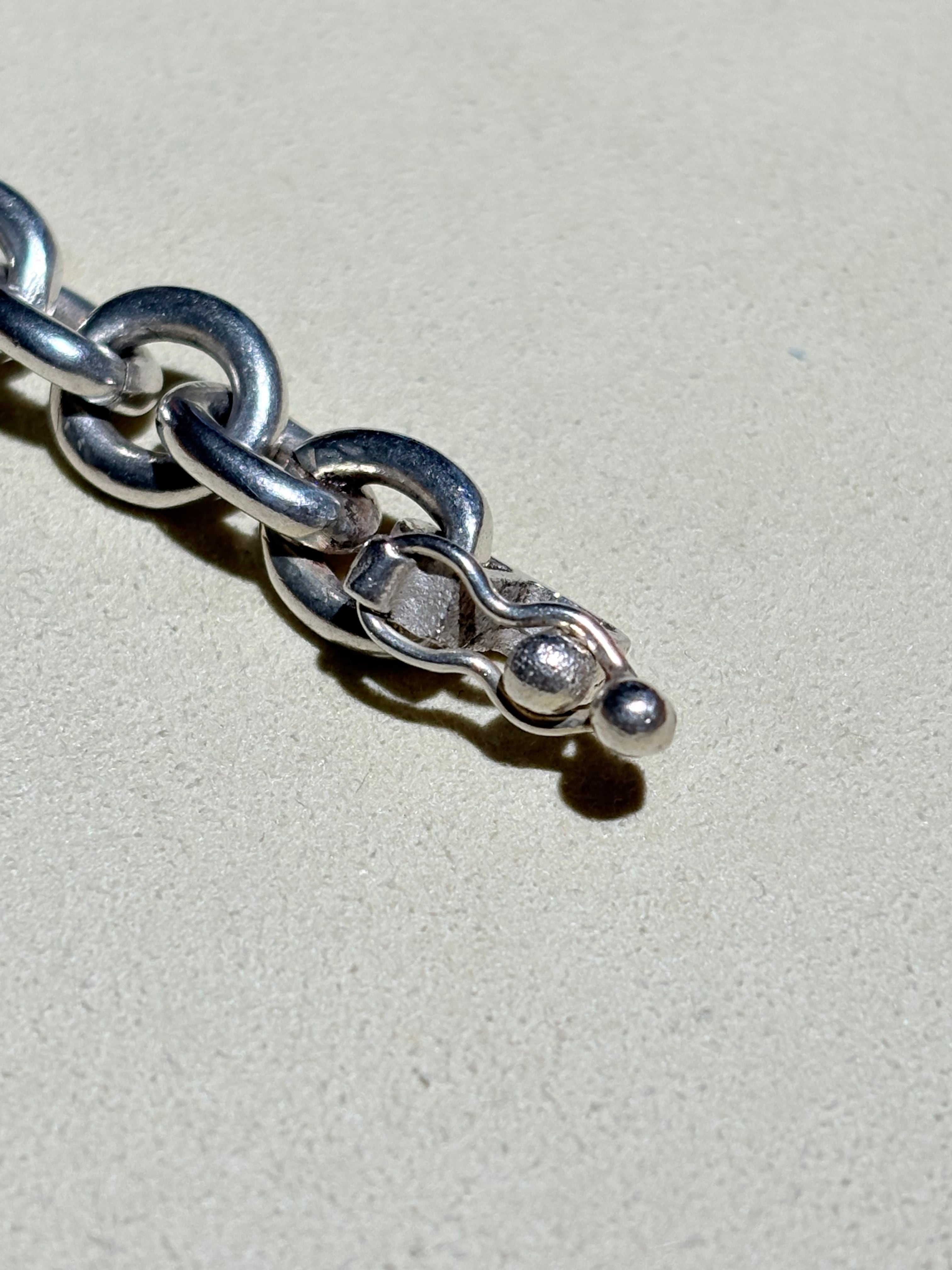 正円のコマを中心に、デザインの効いたコマ、マリナーリンクを配置して、オーバルチェーンで繋げています。